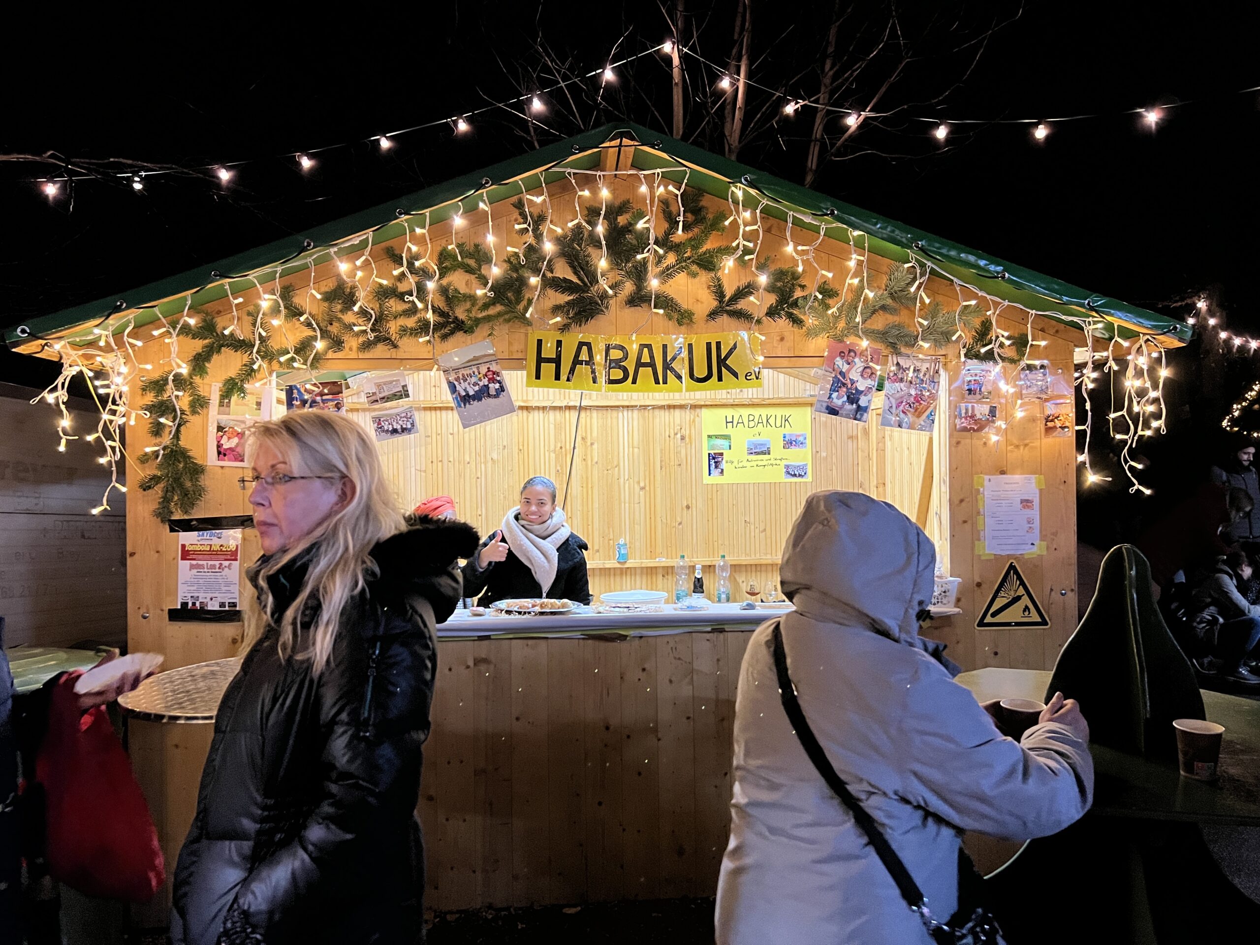 Hier sind einige exklusive Bilder von unserem Weihnachtsmarkt. Dort hat Habakuk mit allen Helfern Maniokkroketten, gebackene Bananen und Beignets verkauft!